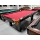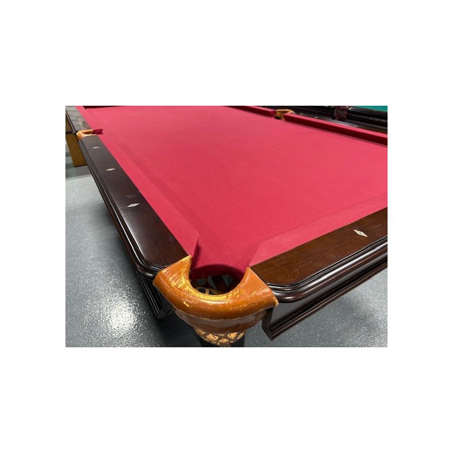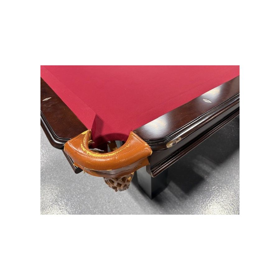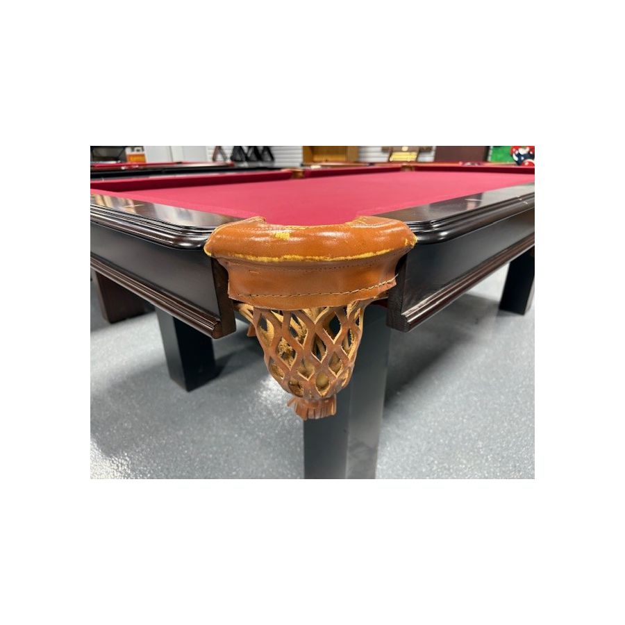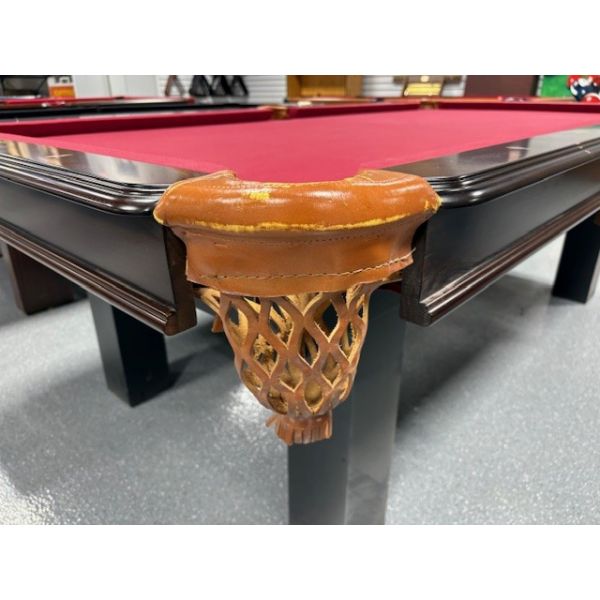 Fabriquée avec Ardoise d'un pouce, bois massif et bois d'ingénierie fini Noir, pattes carrées, poches en cuir véritable noir et tapis Bourgogne.