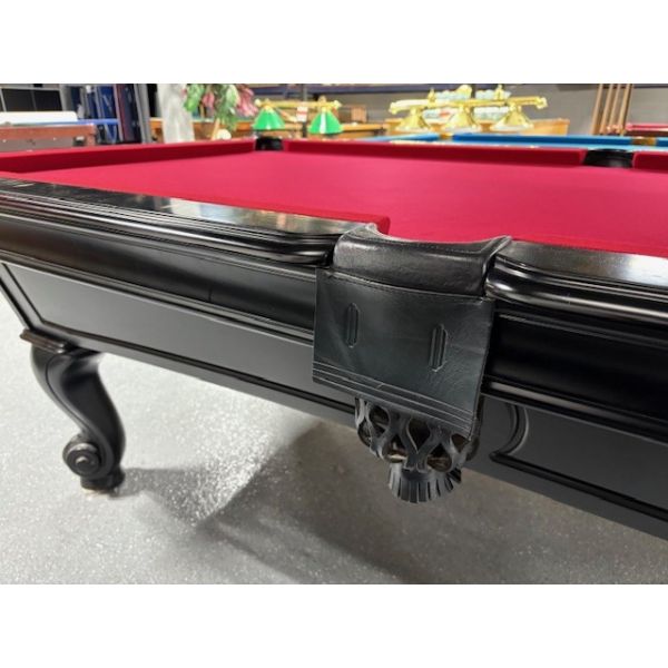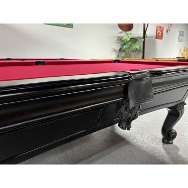 Fabriquée avec bois massif Européen et Nord Américain, poches en cuir véritable, tapis neuf Championship Invitational Rouge muni de protection anti-taches.
