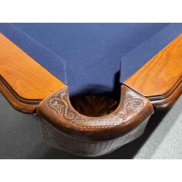 Fabriquée en bois massif Nord Américain et Européen, ardoise naturelle, poches en cuir véritable et un tapis de billard Championship Invitational muni de protection anti-taches Teflon.