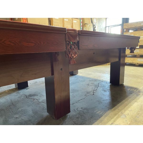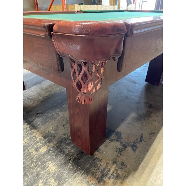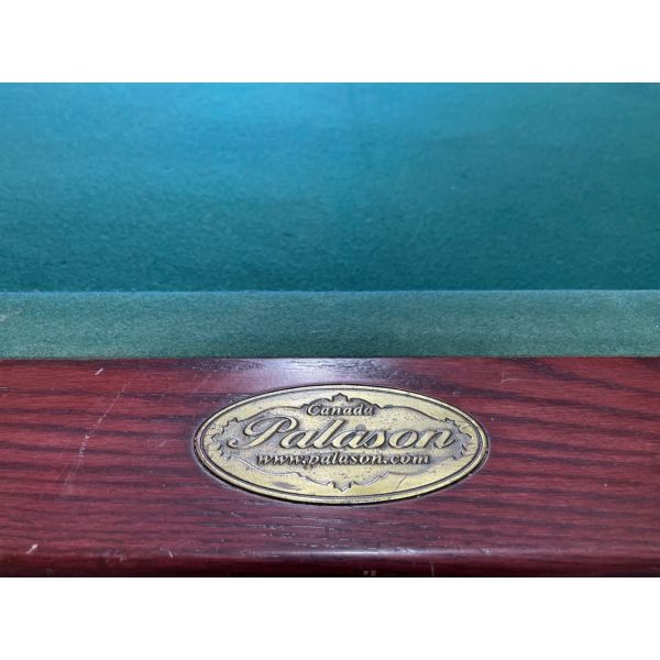 Fabriquée avec bandes de dessus et cotés en bois massif et bois d'ingénierie, poches en cuir véritable, ardoise d'un pouce et bandes de caoutchouc neuves. Inclut un choix de plus de 24 couleurs de tapis protégé au Teflon, une garantie d'un an et une trousse d'accessoires usagés. Code : TABLE511PAL10S