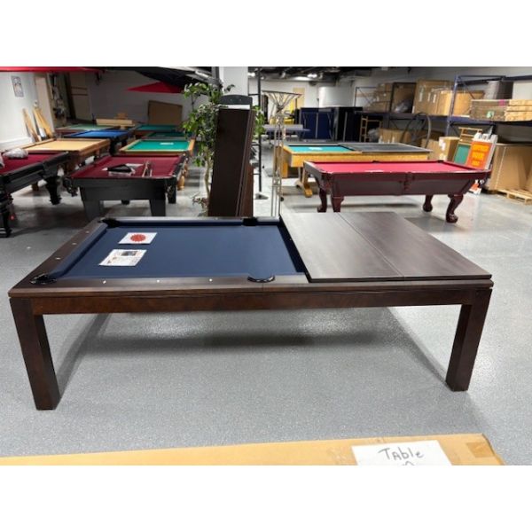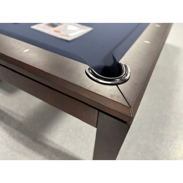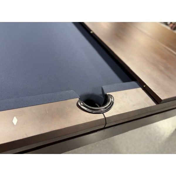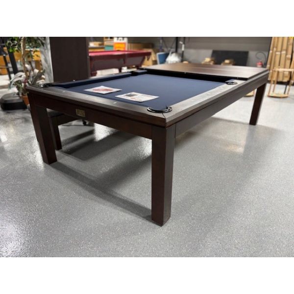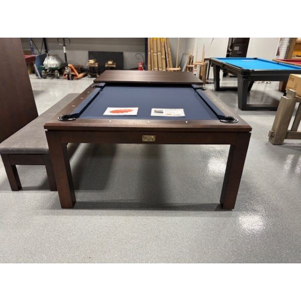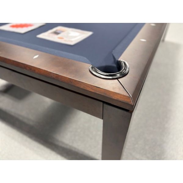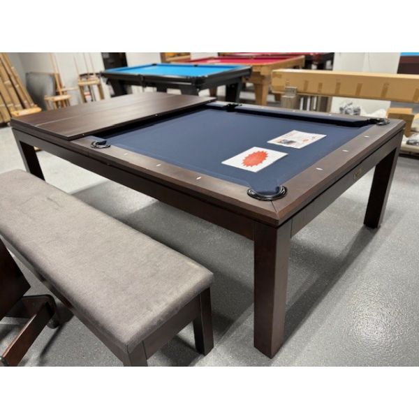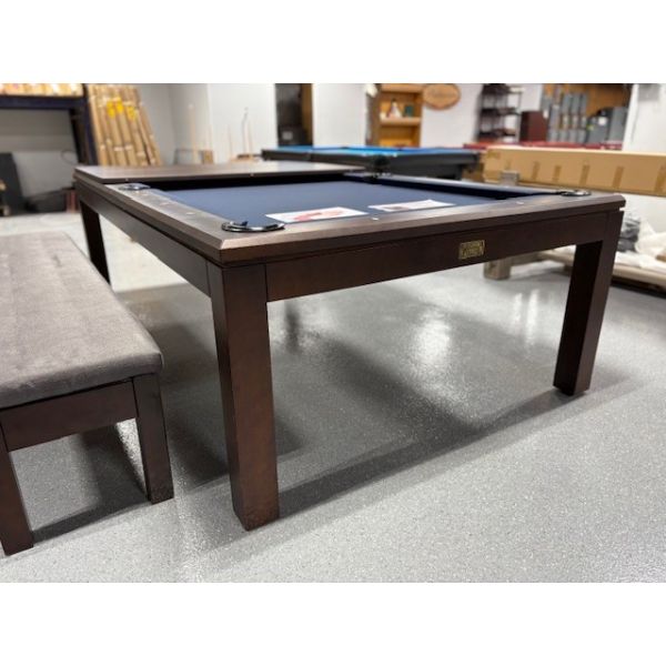Inclut une garantie d'un an, un tapis de billard protégé au Teflon, un dessus de table à diner et banc, ainsi qu'une trousse d’accessoires usagés.