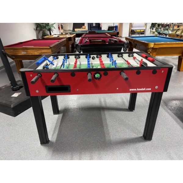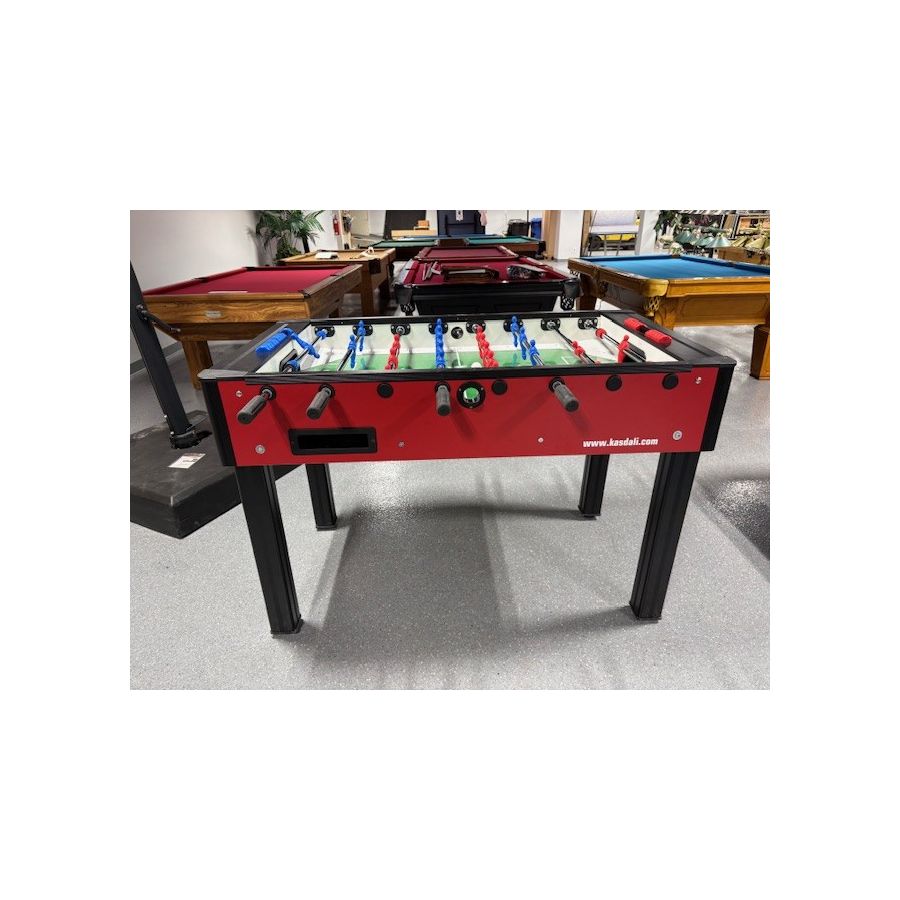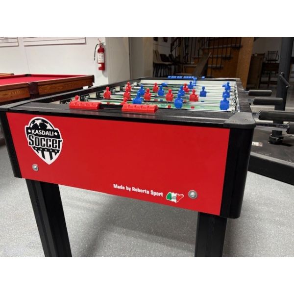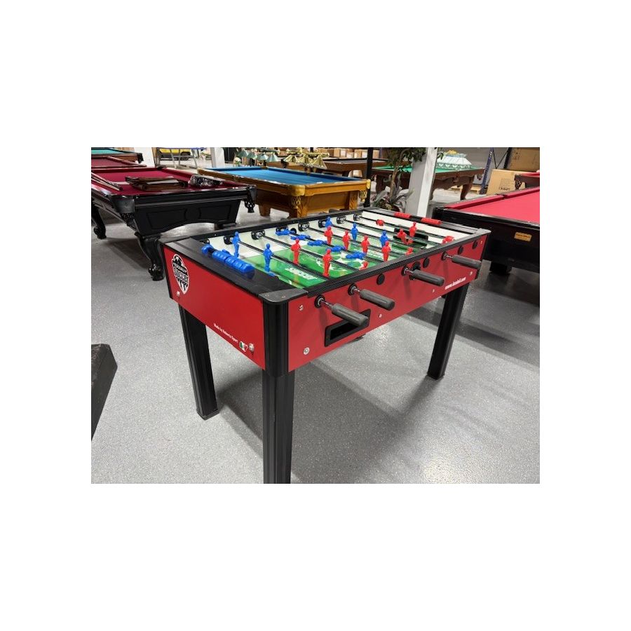 Table de babyfoot soccer rouge usagées avec tiges télescopiques fabriqué par la compagnie Roberto Code : GAME094